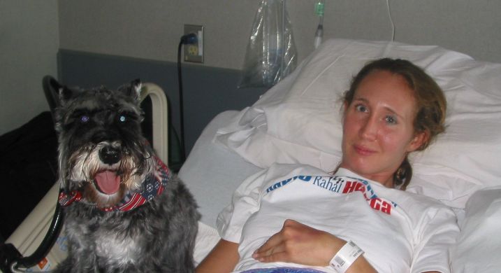 Here’s Mariah and Bogart, famous therapy Schnauzer.