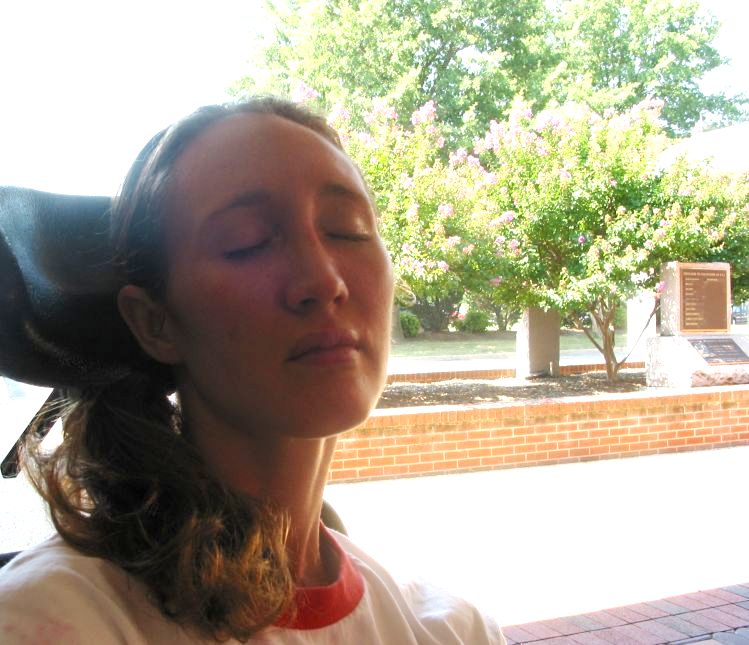 8:30 am – Mariah awakened by Dad. She’s positively glowing and reports having had a good night’s sleep. Nurses take over to feed, bathe, dress, etc. Her team of seven has already met and set short term goals for her. One is to start using head nods and shakes for “yes” and “no” with at least 75% accuracy. This will be pursued consistently in all her sessions. It’s part of Dad’s job to do so, too, and to let nurses and others know to encourage Mariah to use her head as well as her toe wiggles.